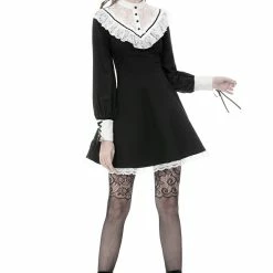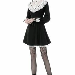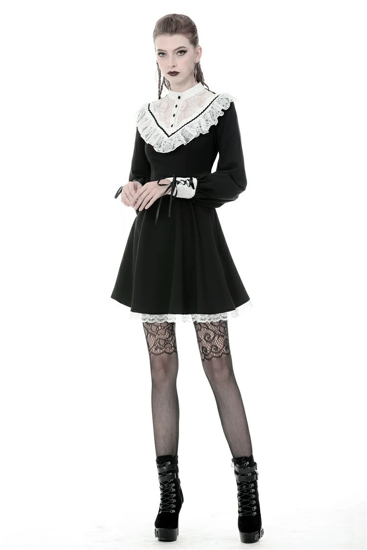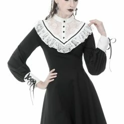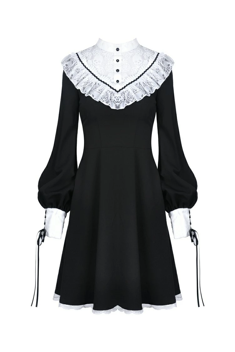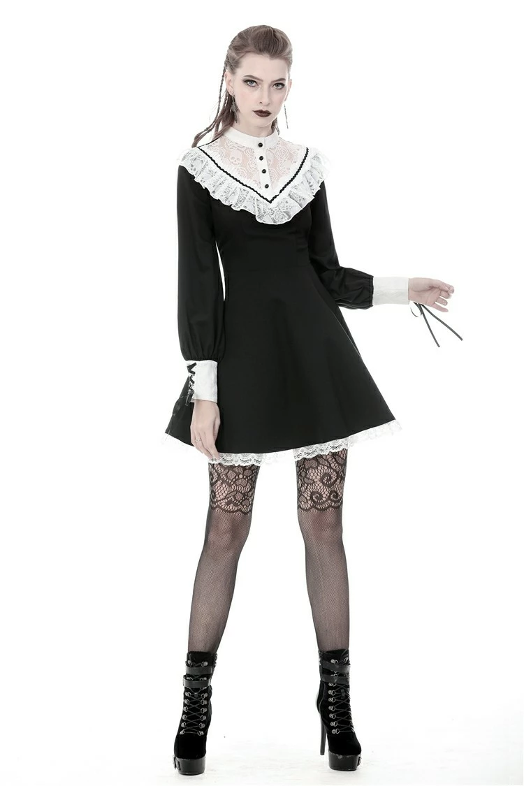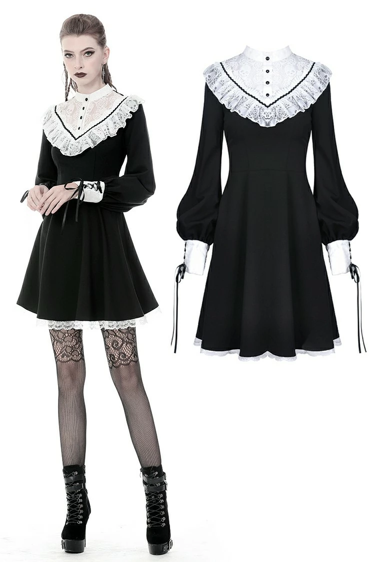 *White floral lace detail at the chest, sleeve cuffs, and hemline lining