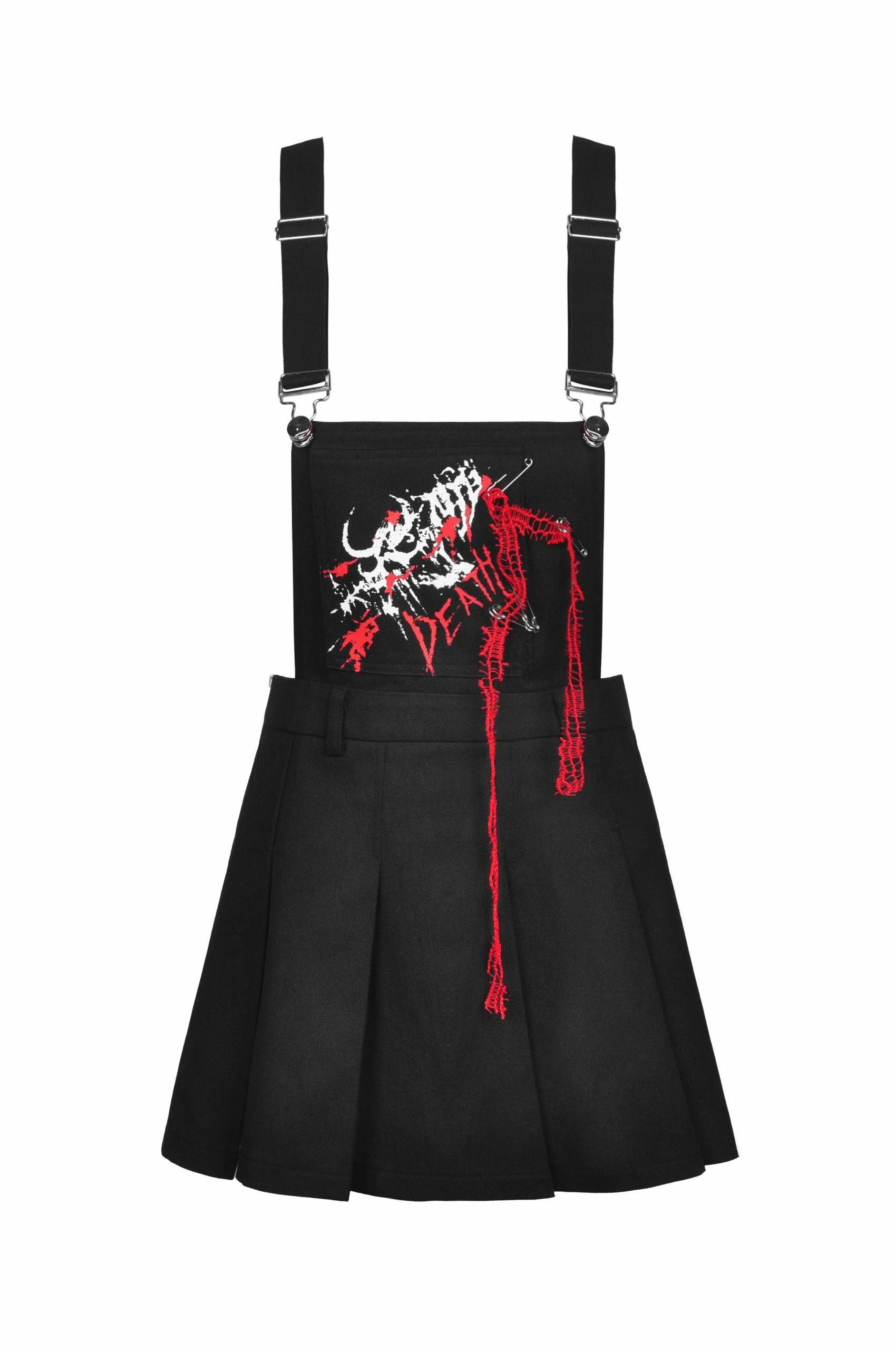The front of this dress is detailed with a bloody ‘Death’ graphic print and safety pins detail.