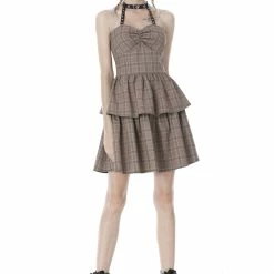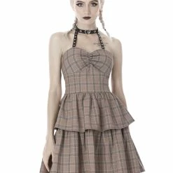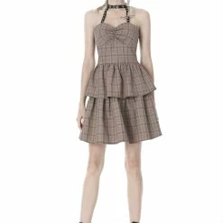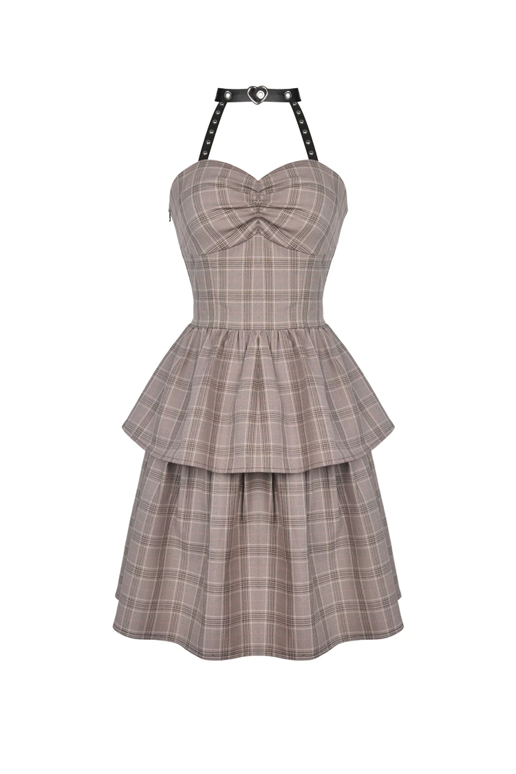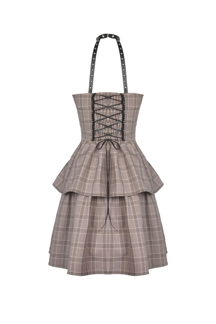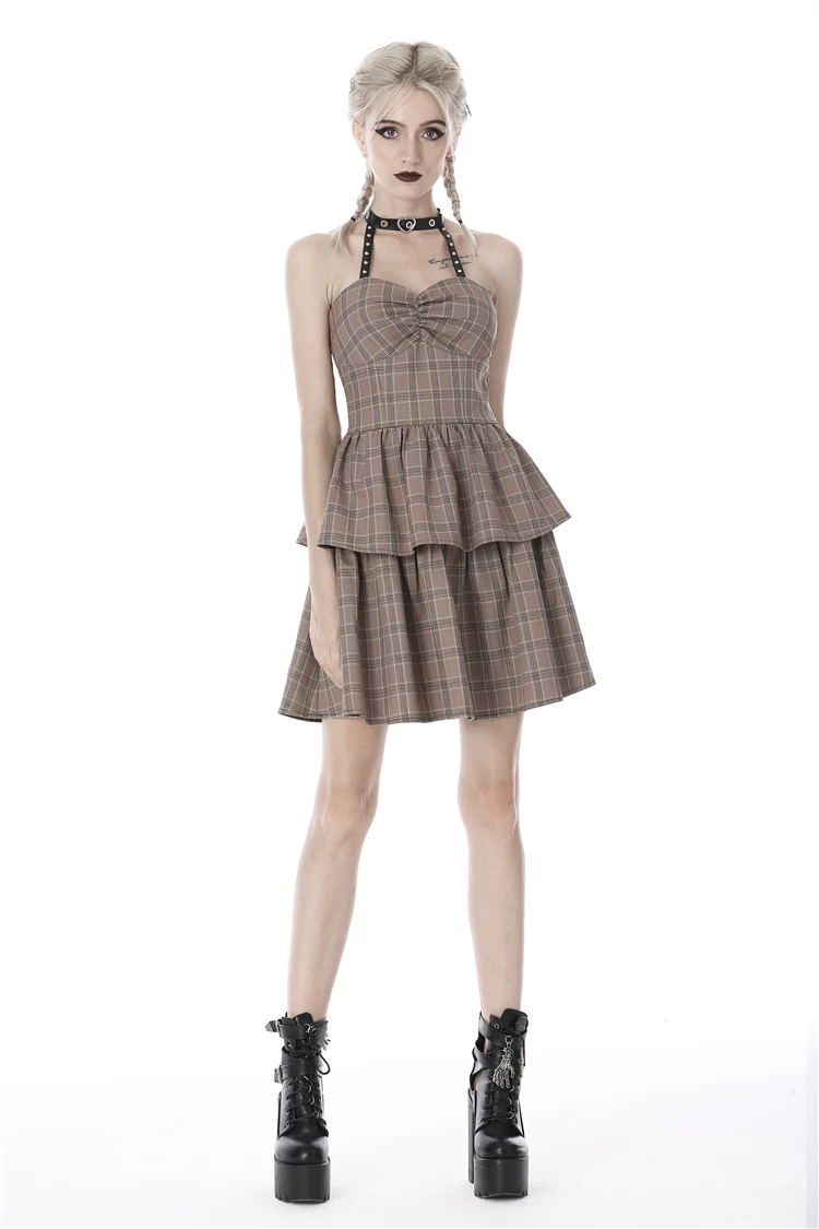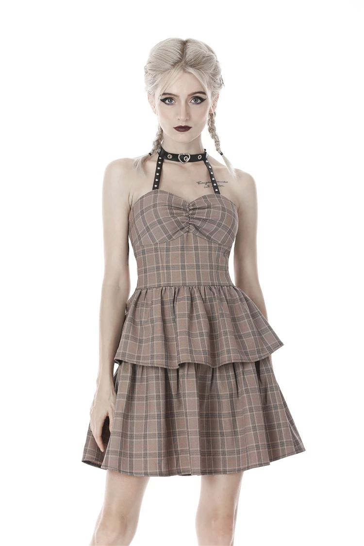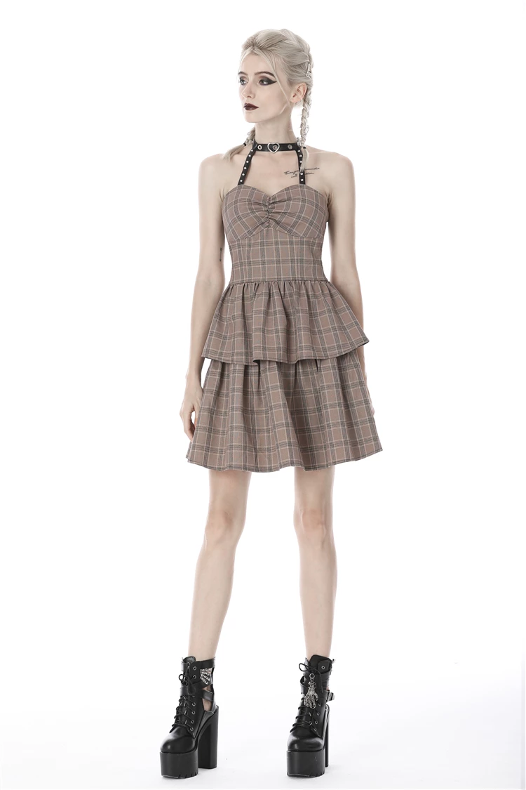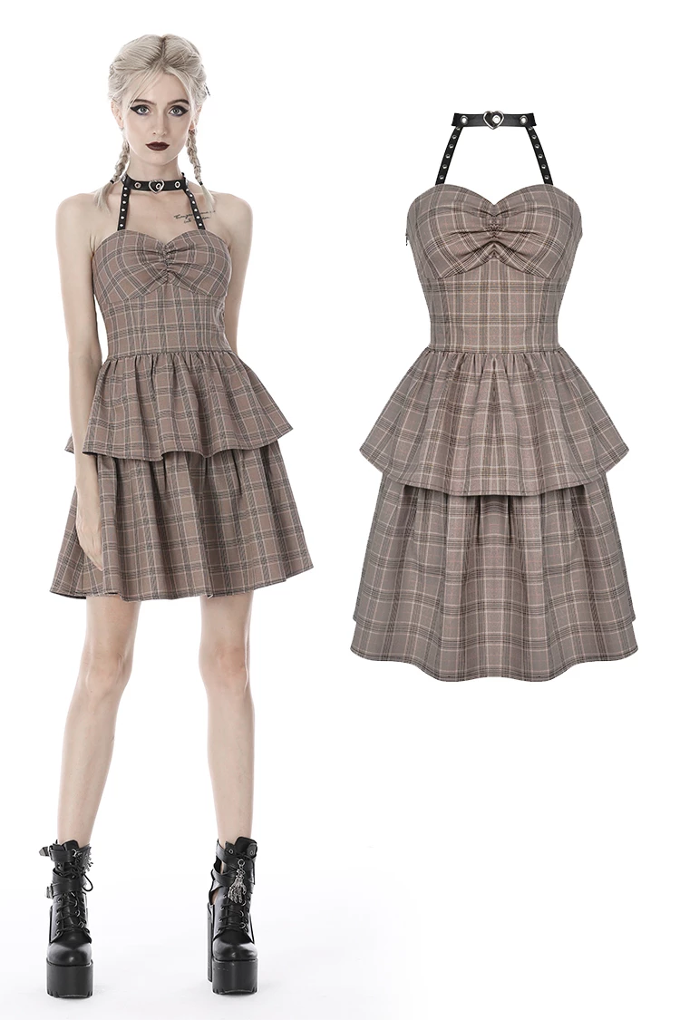 *Feel the Gothic energy in our layered checkered pleated dress!