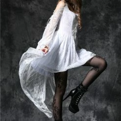 *Floral lace embroidered fabric all over and a ruffled dovetail