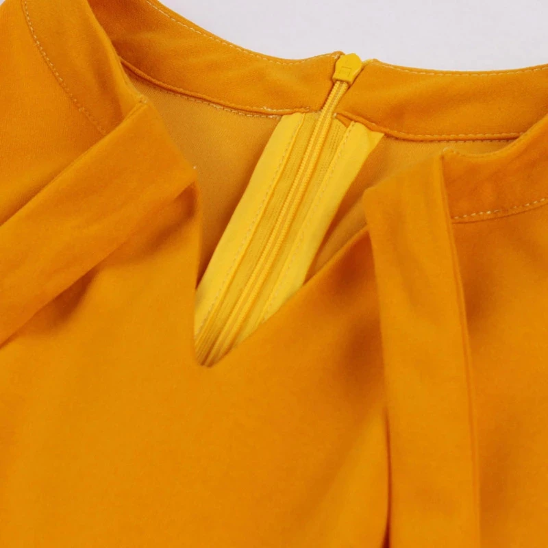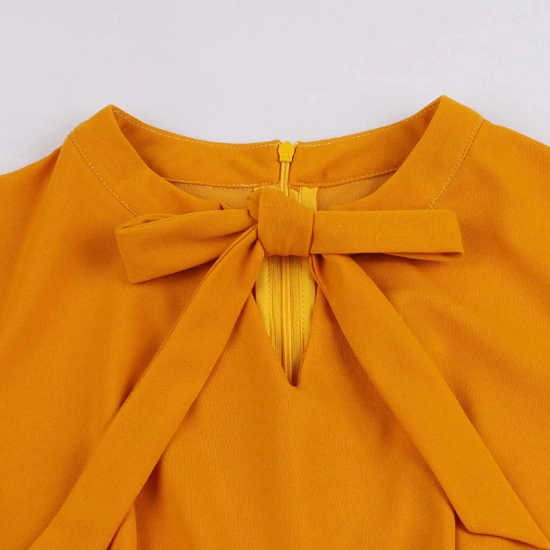 * Neckline: Tie neck