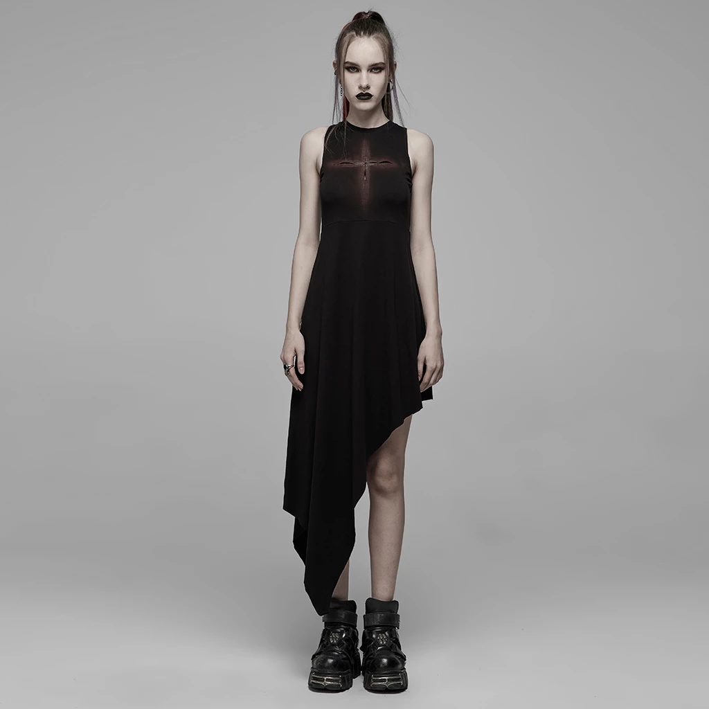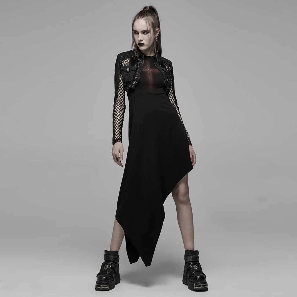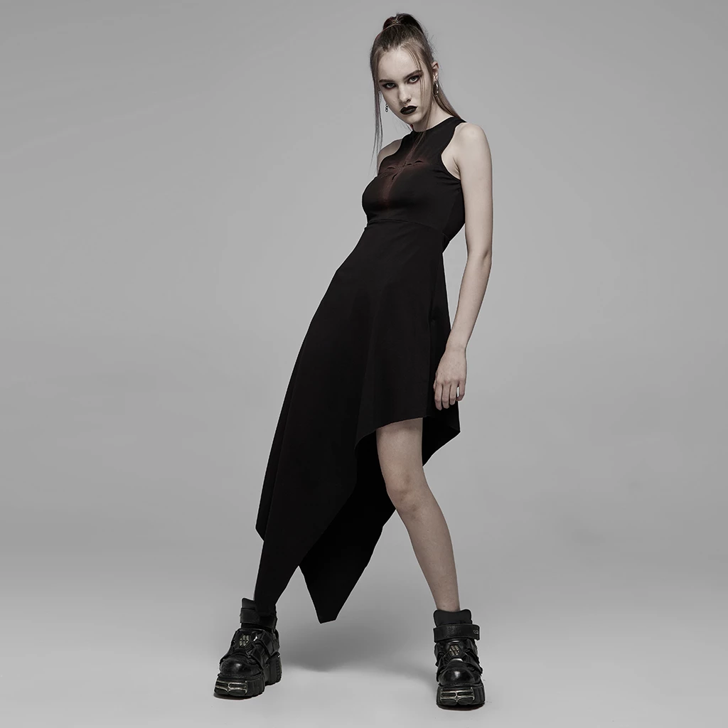 *Asymmetric pointed hem, highlighting Gothic dark feeling.