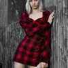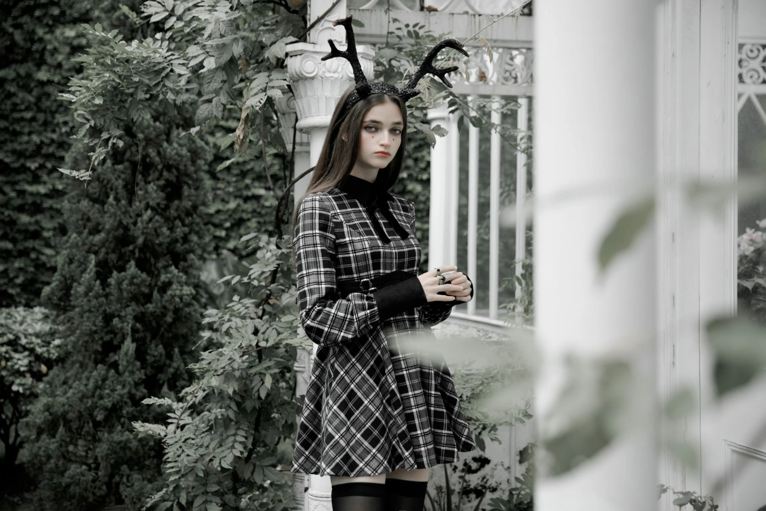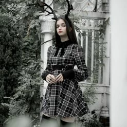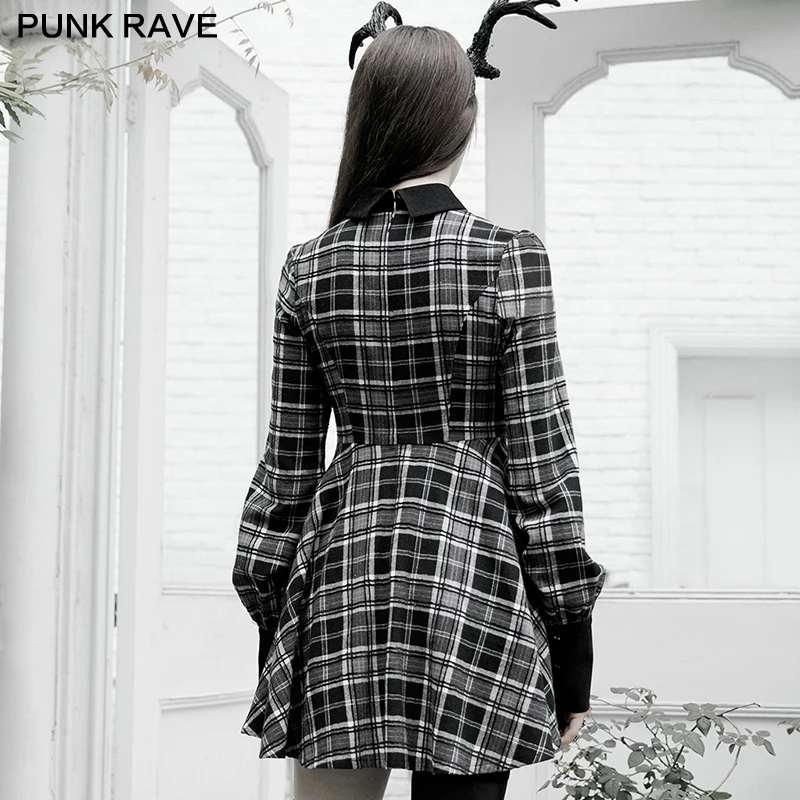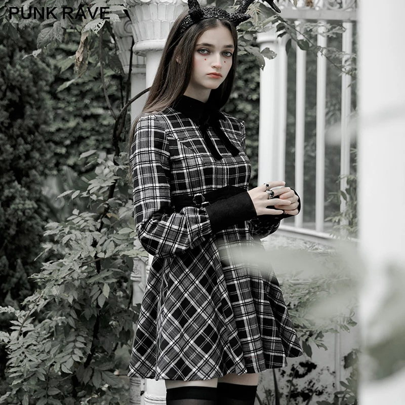 This black and white plaid dress are made of 100% cotton, 95% polyester, and 5% spandex material. It is long-sleeved with stretchable contrast black cuffs. It has a black lapel collar with a velvet bow at the front and a metal zipper at the back for closure. It fits above the knee and has a pleated bottom design giving you a beautiful silhouette. The waist is detailed with a double Japanese button belt to add to its beautiful features.