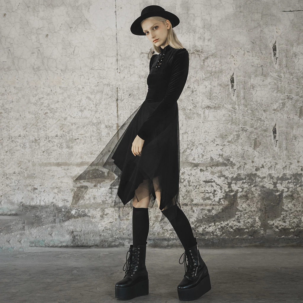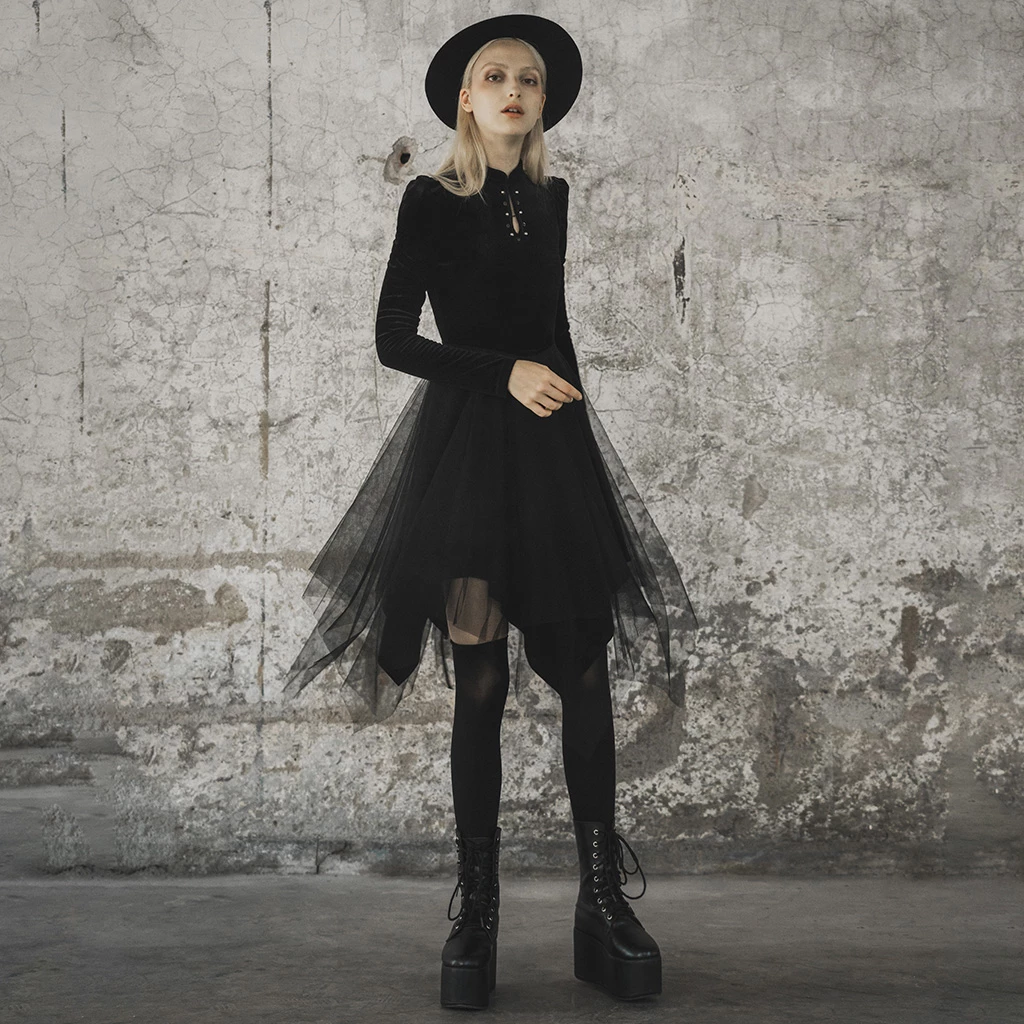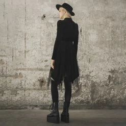 - Features: Asymmetric hem, zipper, mesh patchwork