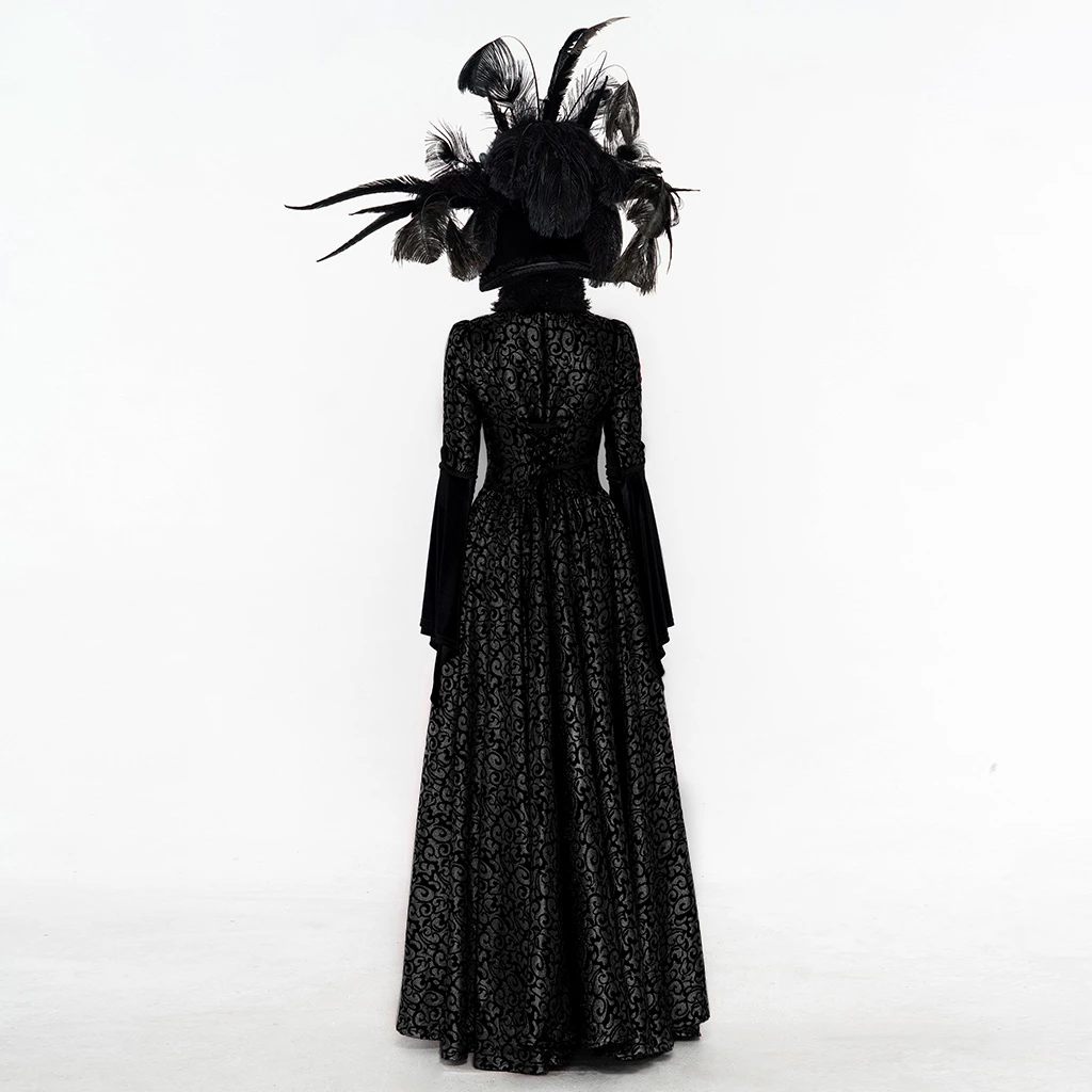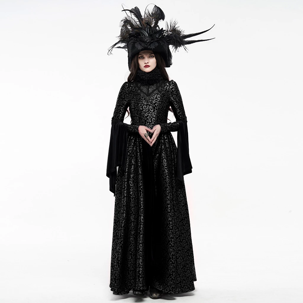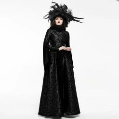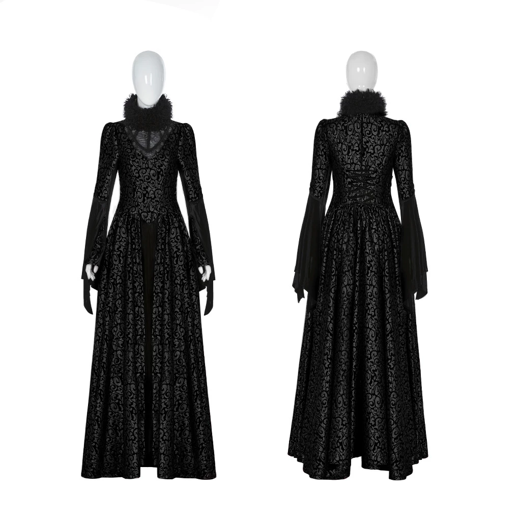This maxi dress is made of polyester and spandex. It has a back lace-up closure and an ankle-length with a pleated design. The dress also features a chest mesh hollow-out and has a stand collar with long sleeves. You can pair this dress with heels.