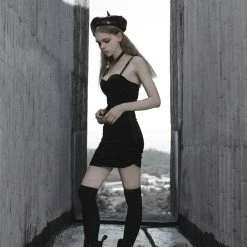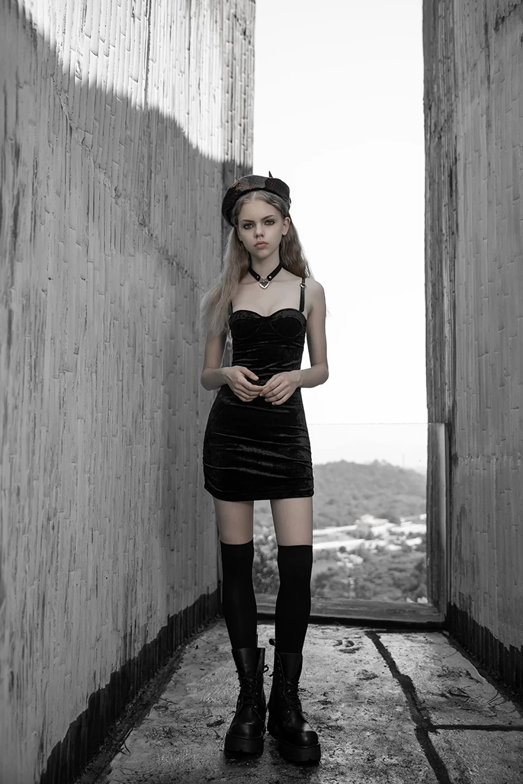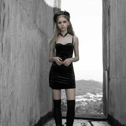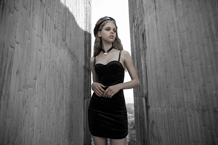 This beautiful dress is made of 90% cotton and 10% spandex material with velvet fabric that is soft and comfortable. It fits above the knee and has a sweetheart neckline with adjustable PU Leather shoulder straps. It is a slim fit with a chest pad to accentuate your cleavage. It has a side zipper for closure and is ruched on both sides for more detail. This is the perfect dress to wear to dates, dinner with friends, or out clubbing. Finish off the look with a black blazer and sandal heels.