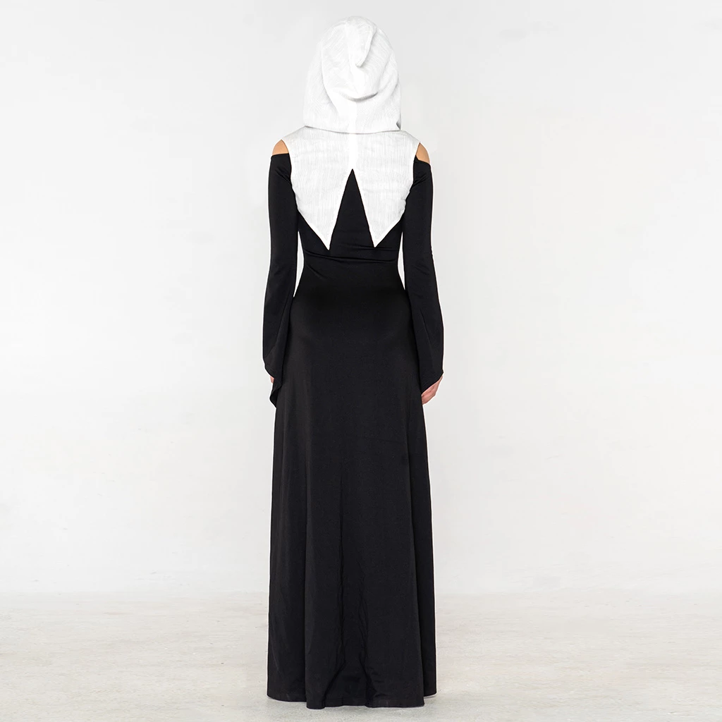 Punk Rave Dresses White Zipper Hoodie Asymmetrical Flare Sleeves Dress