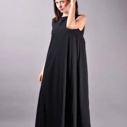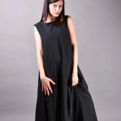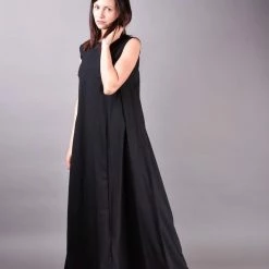 Beautiful long kaftan dress in black. The model’s sleeveless cut with a loose fit shape look great on all body types. This summer dress is suitable for future mothers who are looking for a stylish and comfy maternity dress. Moreover many plus size ladies who are trying to find plus size clothing for their special occasion also choose this long black dress.