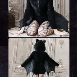 Long sleeve black dress with bat wings and bat ears hoodie.