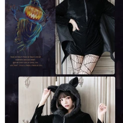 Long sleeve black dress with bat wings and bat ears hoodie.