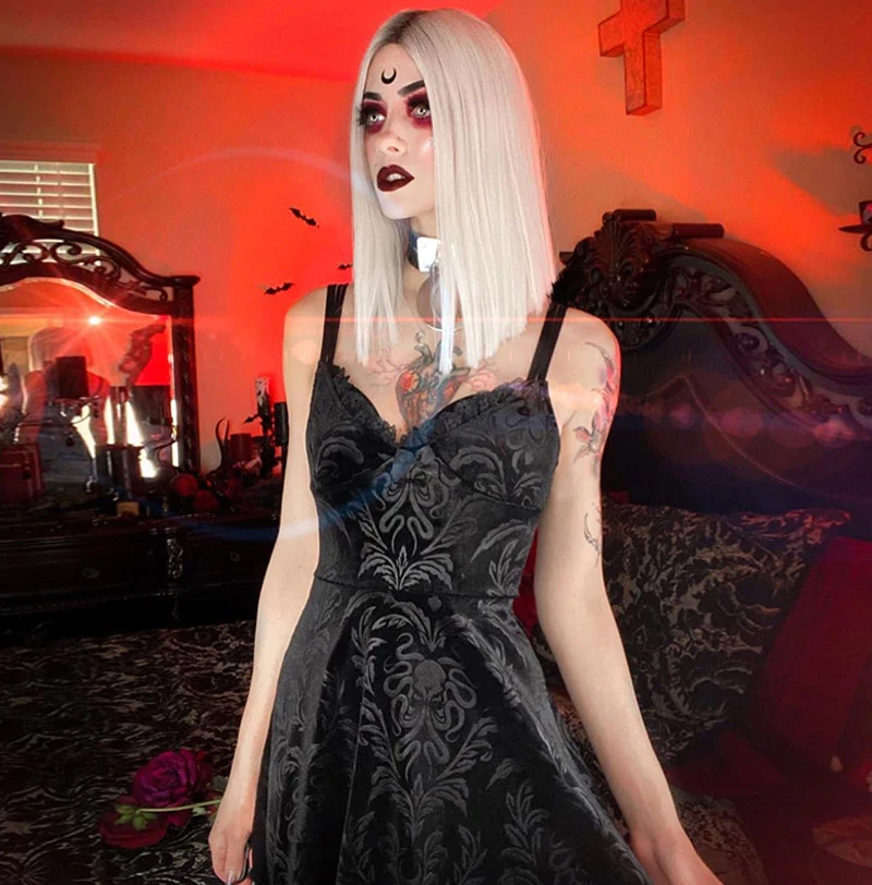 RebelsMarket Tanks Tops & Camis Gothic Punk Black Floral Print Sleeveless Cut Out Tank Top