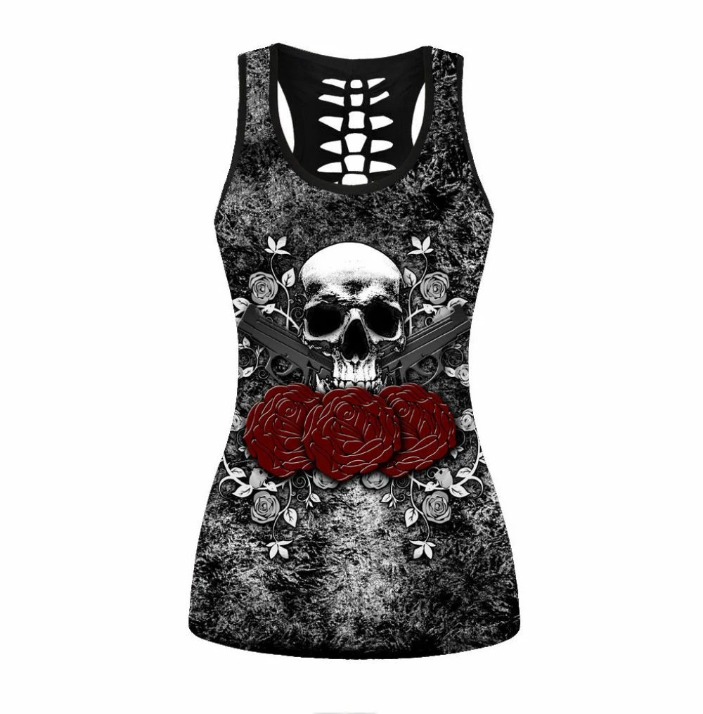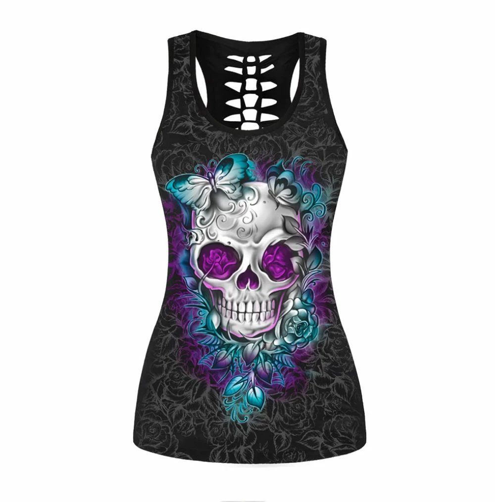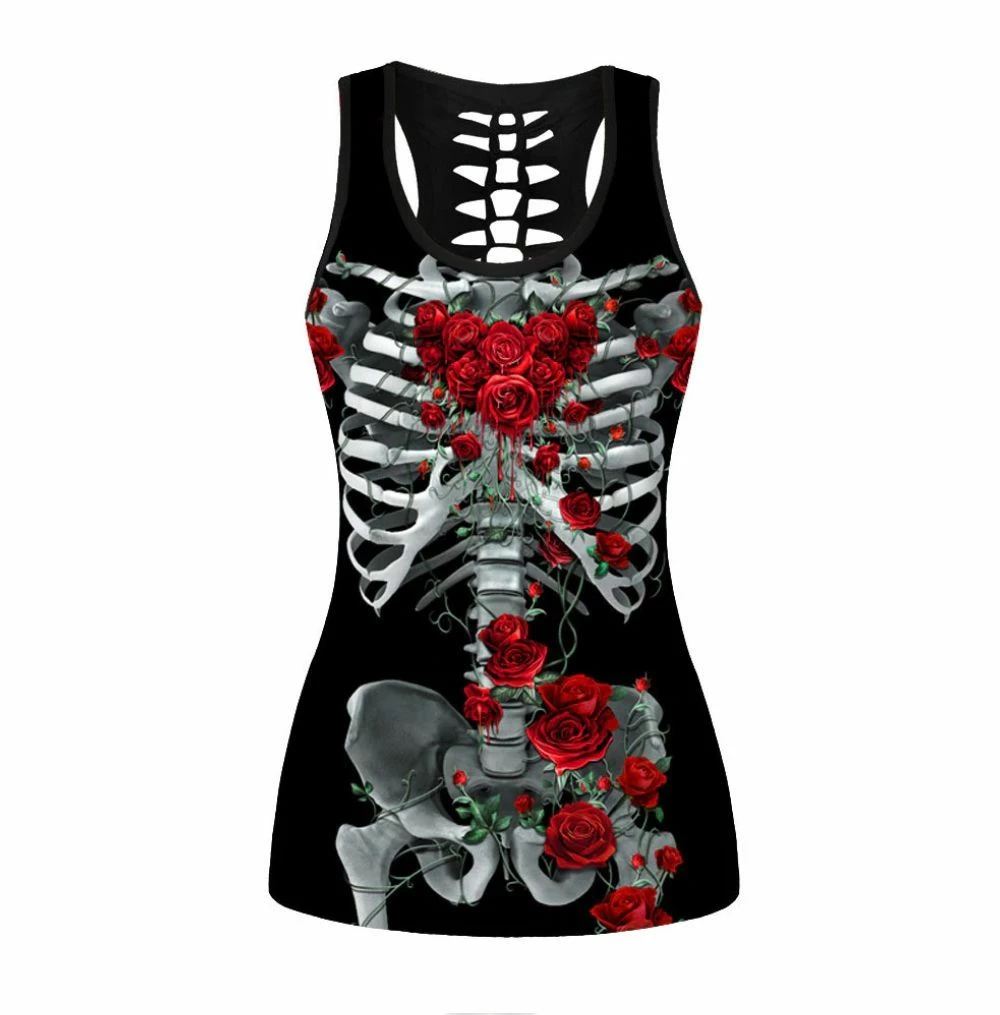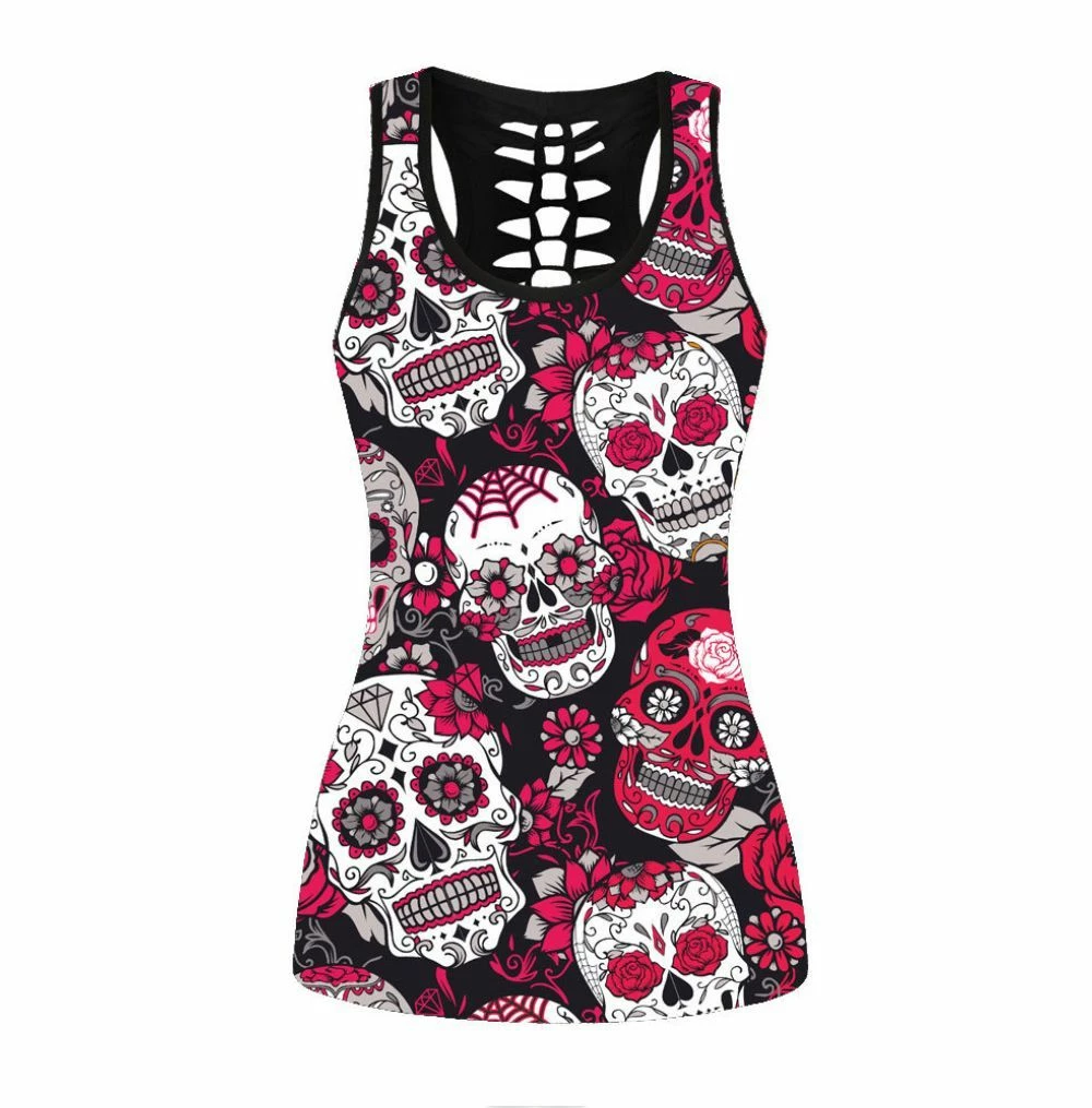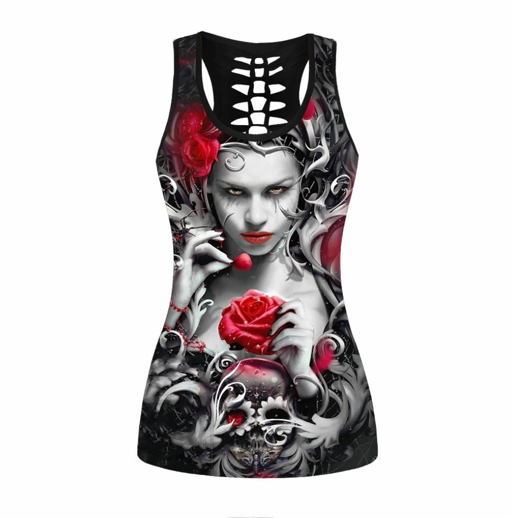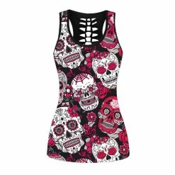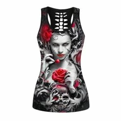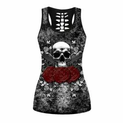 This tank top is available in seven different patterns. It is made of spandex and polyester material soft to the skin. It is sleeveless with a cut-out design at the back to give it a cool look. It is round neck and the Gothic and floral print makes it stand out. Wear with a leather jacket and high waist pants with boots to a Gothic themed event.
