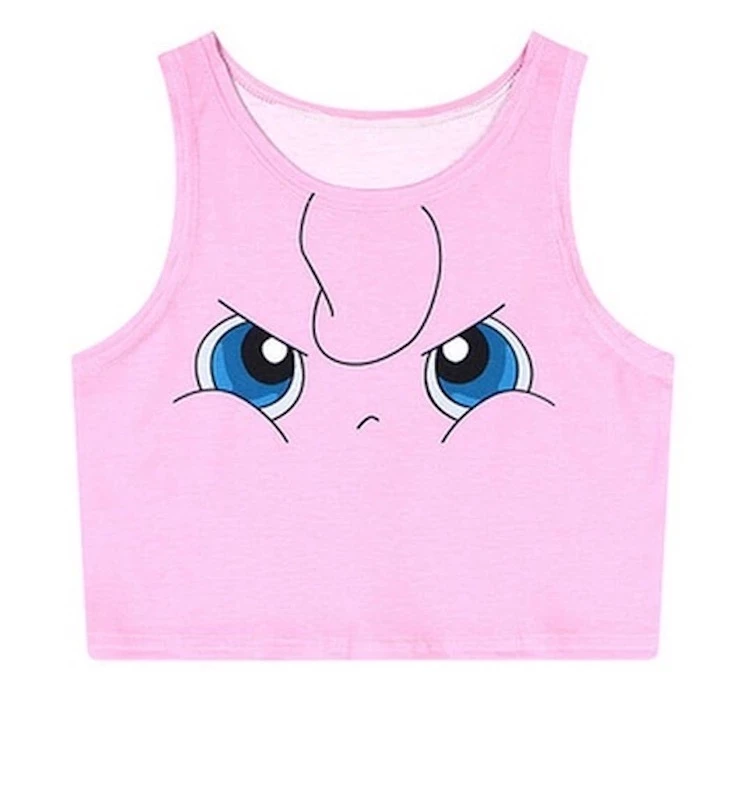 One size Pokemon cartoon print sleeveless cropped tank tops.