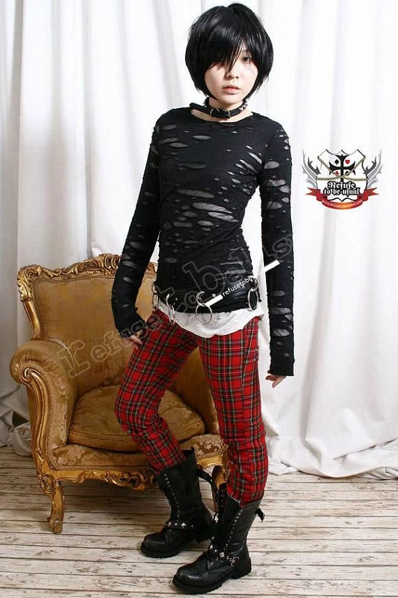 gothic punk style unisex top with extra long mitten sleeves. slim fit! very simple and wearable. made of unique corroded/broken/distressed textured fabric. top layer is opaque with broken burnt holes. underlayer is thin and sheer (and will show skin). thumb hole on sleeves. serged hems through out. great on guys or girls. RTBU exclusive item! only available here. NOTE: the white thermal shirt underneat is not for sell. without the shirt, the holes will be more translucent. garment care: reverse the shirt inside out. handwash and line dry for best result. seller is not resposible for import duty (VAT), custom tax on your package.Â