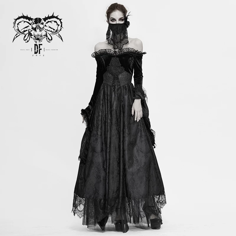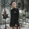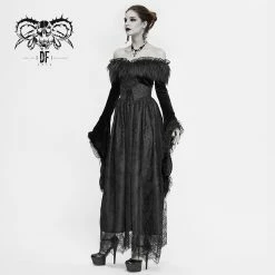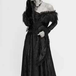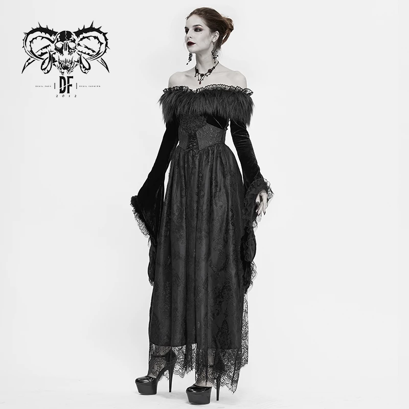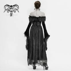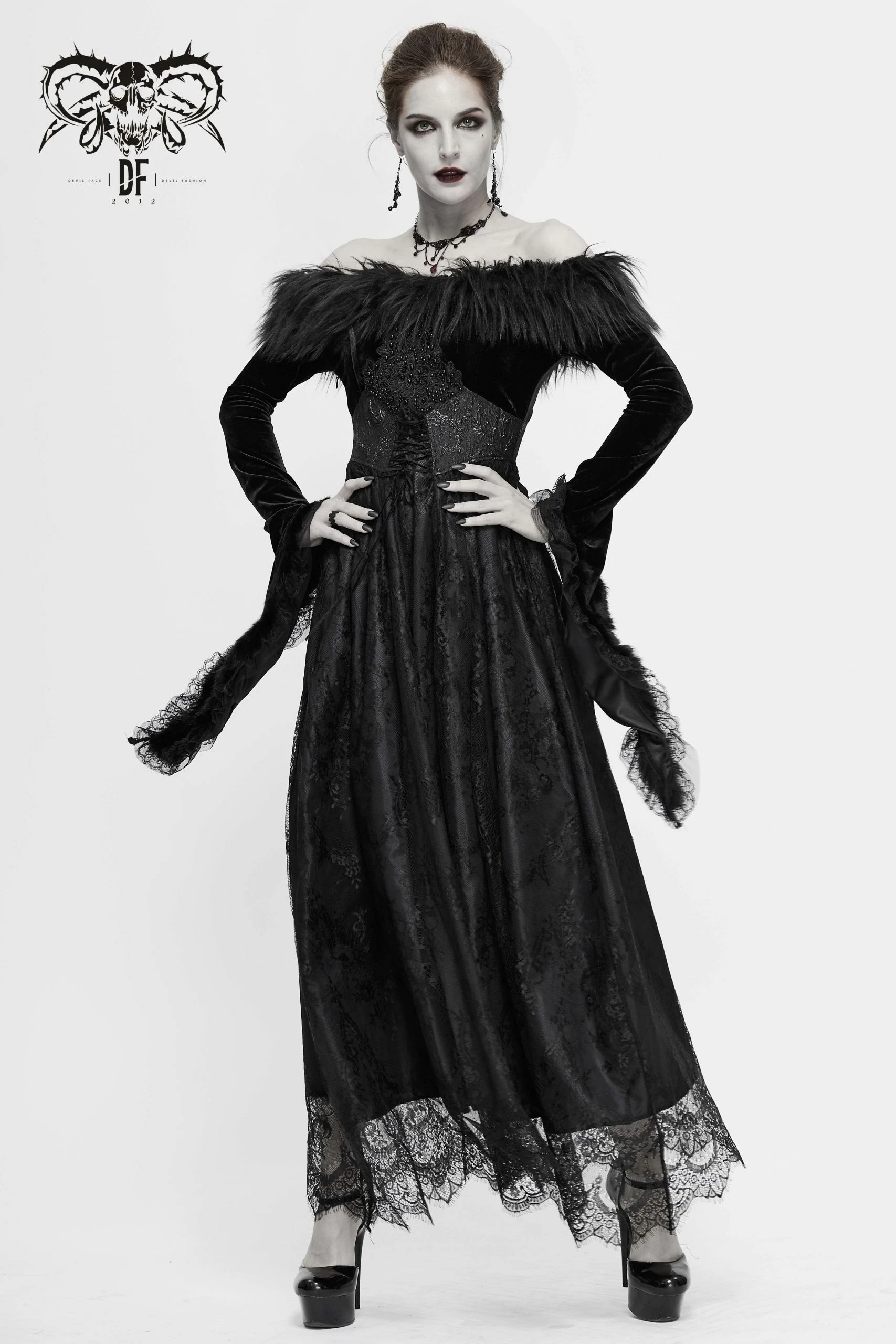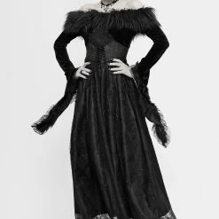 Wear this gothic dress to festivals and get the party started! It features a furry layered shoulder design that is slightly off-shoulder. It has flared sleeve design that will keep you breathable. The criss-cross straps at the front and back allow you to adjust how loose or tight you want the dress. This gothic dress contains real rabbit hair for a more authentic feel. Wear it down with strappy sandals, platform, or glossy heels.