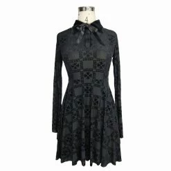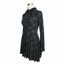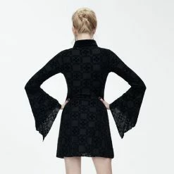 This black dress is a must-have. It has long trumpet sleeves with a lapel collar. It is short to fit above the knee. It has a ribbon bow tie to add to its beauty. This dress has a button-up closure and is lined for comfortable wear. Wear this beautiful dress to dates, brunches or clubs with friends. Pair with knee-length boots or sneakers.