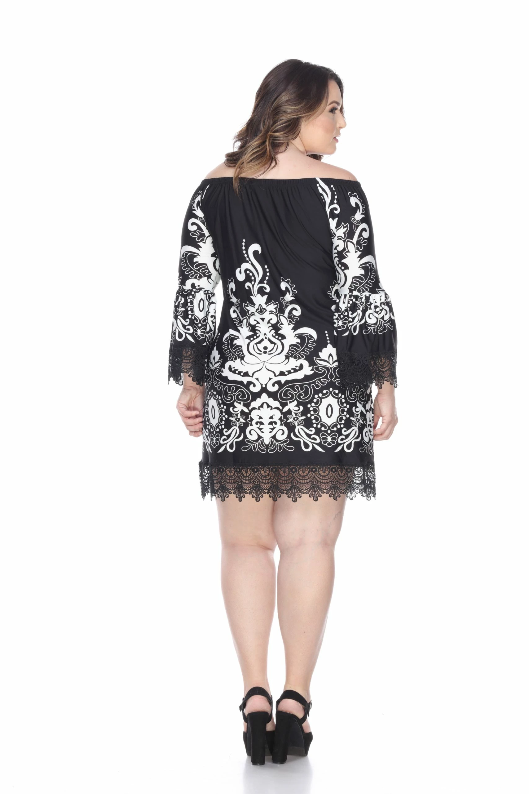 - 3/4 bell sleeves with lace trim