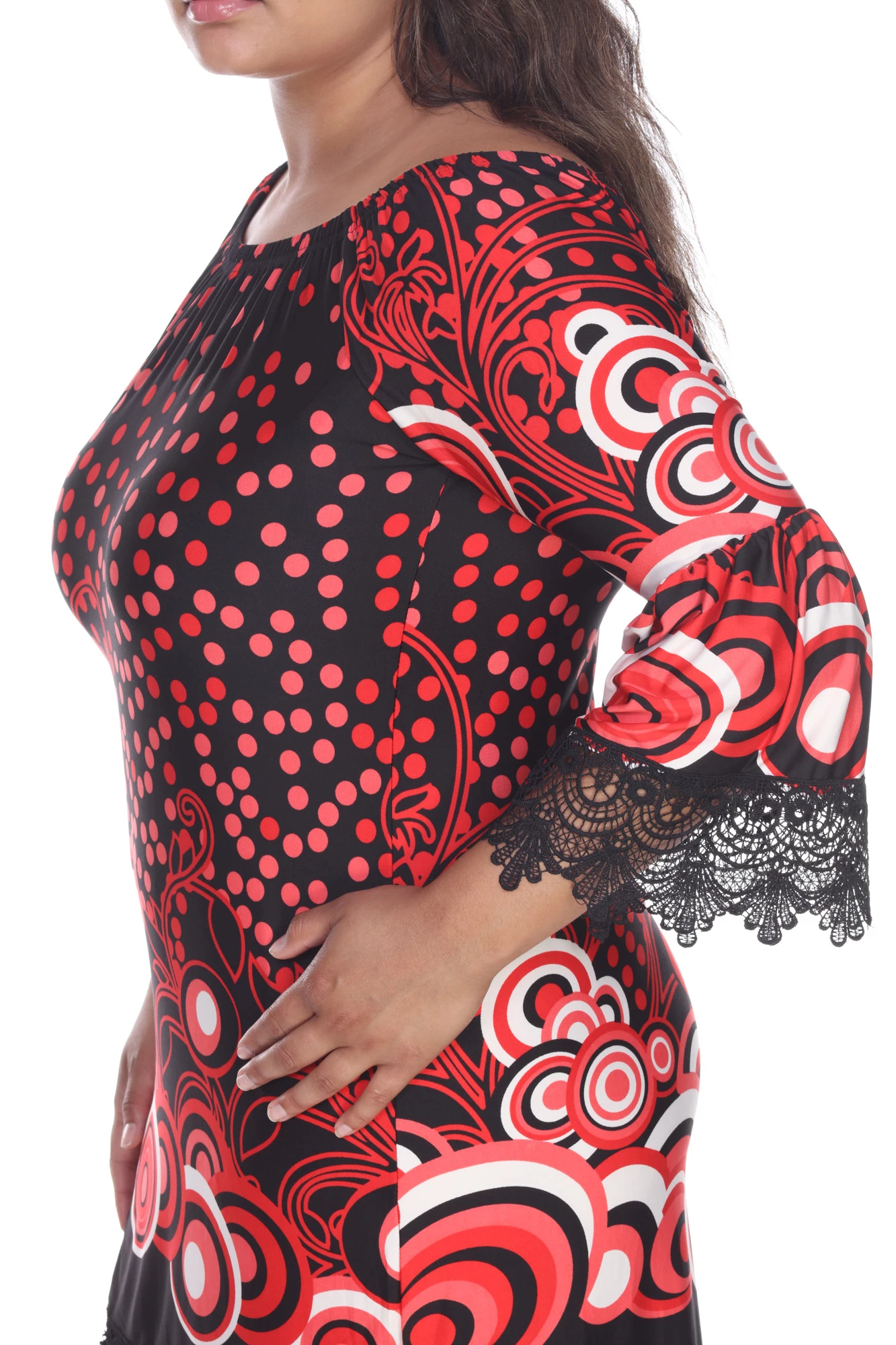Show off your full figure as you get the weekend or summer party started by dressing in this polka and floral print mini dress. Its on/off shoulder design parades your collar bone as the empire waistline gives an illusion of a small waist. Short in nature, comfort and unrestricted movements are guaranteed through the day. To top it all, the lace hemline and sleeves speaks volume on your attention to details!