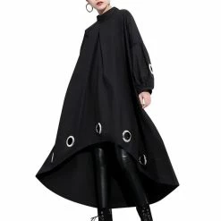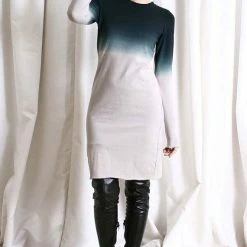 RebelsMarket Dresses Cotton Punk Tie Dye Gradient Long Sleeve Top Slim T Shirt Pjs Dress Gray