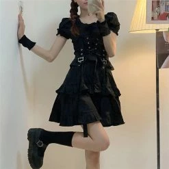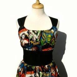 RebelsMarket Dresses Gothic Harajuku Asymmetrical Skeleton Hand Print Sleeveless Harness Dress