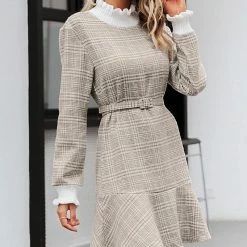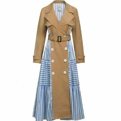RebelsMarket Dresses Steampunk Streetwear Double Breasted Long Sleeve Striped Khaki Maxi Dress